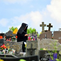 I made it to the graveyard and began wandering among the markers, making mental notes of all I saw. I watched families finish making a grave just so, arranging flowers and candles, speaking in whispers, then stand up, cross themselves, and walk away. I saw solitary babcias roaming about, their heads covered with the customary babcia scarf. They stopped in front of graves, hands laced together in front of them, their lips dancing as they muttered a prayer.