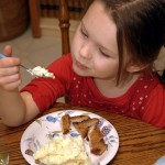 2. Thank you. She does enjoy eating, particularly now that she can do it alone. In fact, she got upset when I tried to help her with her afternoon yogurt yesterday. The results were predictable, but she enjoyed it more — and why eat if you don’t enjoy it, right?