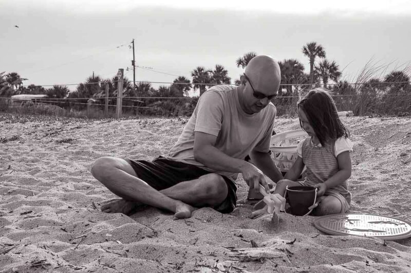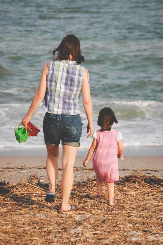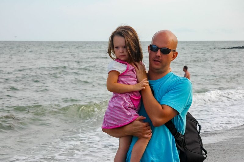 It’s been three years since we’ve been on a beach: K and I head straight for the water, shoes off. L is much less enthusiastic. In fact, she is initially terrified of the water.