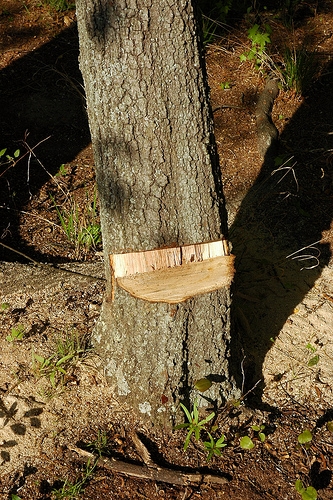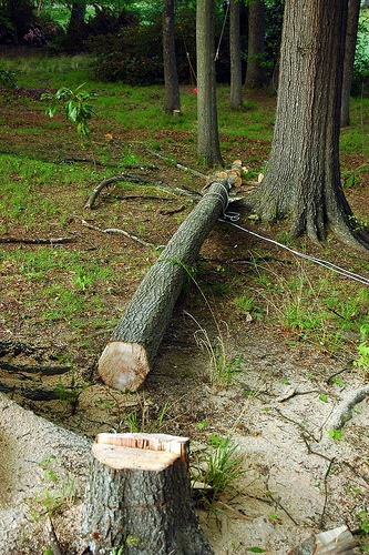 It worked. But not after I literally cut through the entire tree, a nerve-wrenching experience. I could see the tree lurching this way or that, cracking me in the thigh, breaking a leg, an arm, a whole bag of bones. I cut through to the mid-point, then made paranoid careful cuts: squeeze the chainsaw’s trigger, a little cutting, then a retreat.
