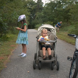 The Girl has a new bike, with gears and hand-brakes. It’s a lot to get used to. Today, she lost control, ran into a ditch, and like a champ, didn’t panic but merely let the bike coast to a stop.
