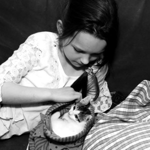 It was time for the Girl to go to bed; it was time for Elsa to play. These two events cannot happen simultaneously: several nights, L has come downstairs, kitten in hand, tearfully explaining that “Elsa is jumping on me and biting on me and won’t let me sleep!” Taking all that into consideration, I explained to L that she would have to go to bed without Elsa, which brought on panicked hysteria. “I can’t sleep without Elsa!” I calmed her down, explaining that I would bring the kitten up to her room once she had tired herself out.