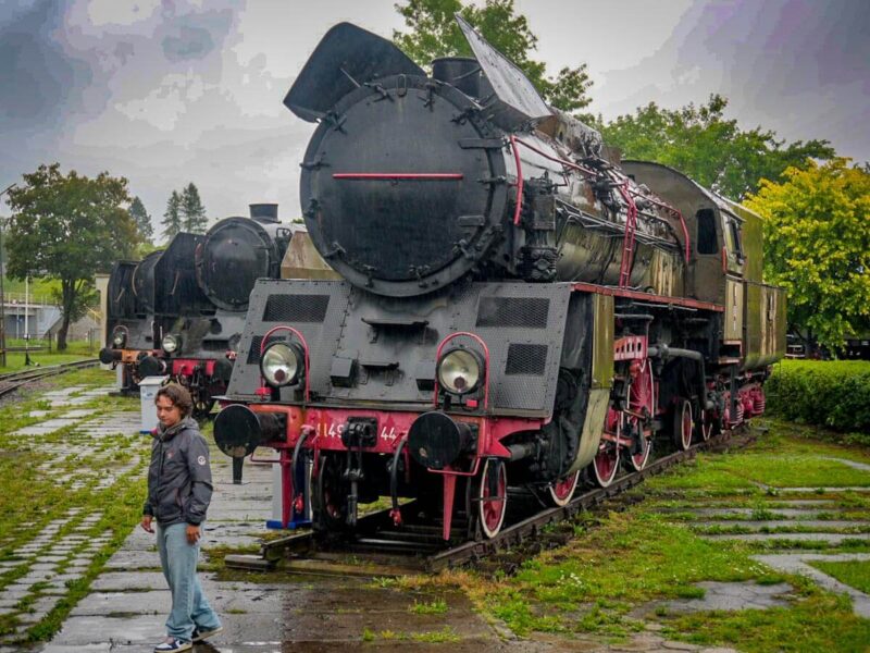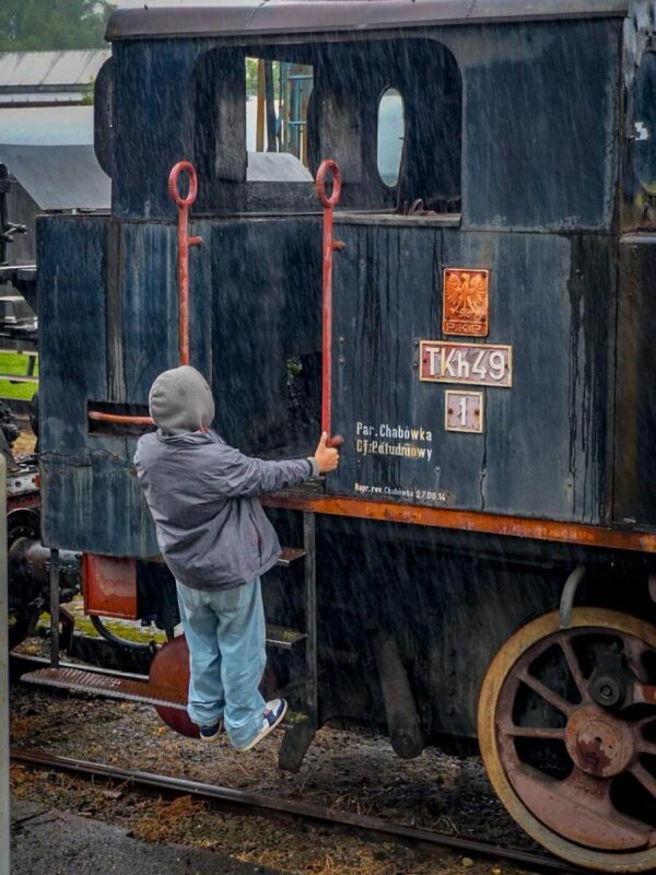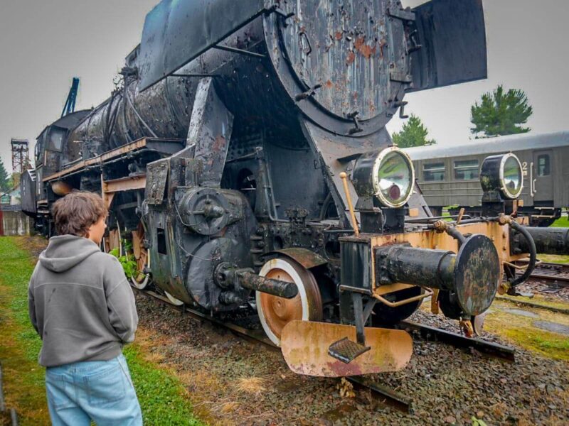 Finally, after lunch, we decided the best place to go was the outdoor train museum we seem to visit every visit lately. It was a little different this time: the Boy wasn’t as fascinated with every little thing like he was during our first visit, and the cold rain was a radical difference from the unbelievable heat we endured in 2022.